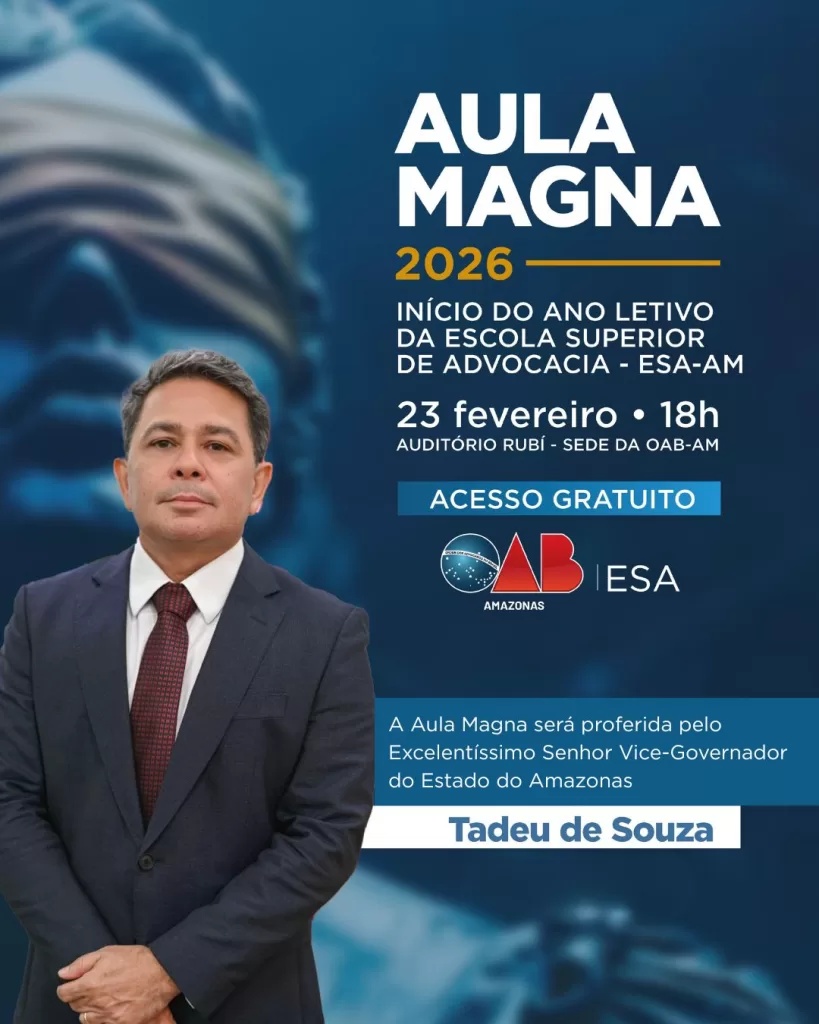 Prezada advocacia amazonense, A Ordem dos Advogados do Brasil Seccional Amazonas tem a honra de convidar para a Aula Magna 2026 da Escola Superior de