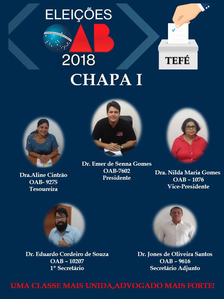 Na subseção de Tefé, o advogado Emer de Senna Gomes e Nilda Maria Gomes foram eleitos presidente e vice-presidente, respectivamente. Aline Cintrão foi eleita tesoureira, Eduardo Cordeiro de Souza como 1º secretário e Jones de Oliveira Santos, secretário-adjunto.