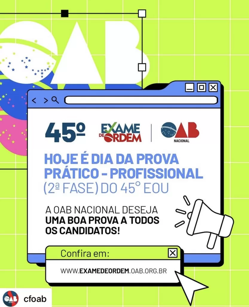 Repost • @cfoab Hoje, você vai mostrar toda sua capacidade na prova prático-profissional e fechar, com chave de ouro, sua participação no Exame da Ordem.