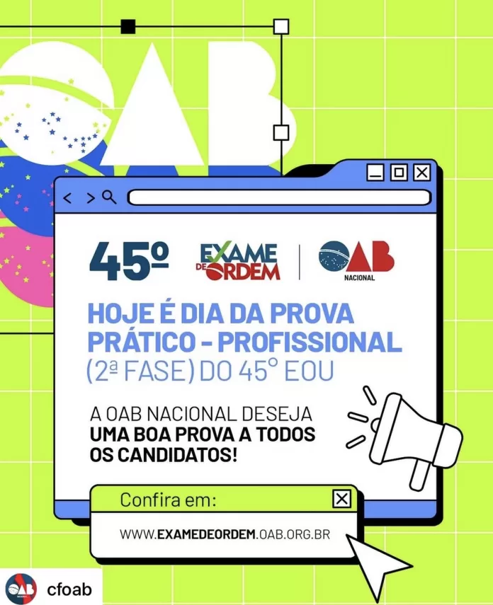 A OAB Nacional lembra da importância de chegar no horário e deseja uma boa prova a todos! ✔️