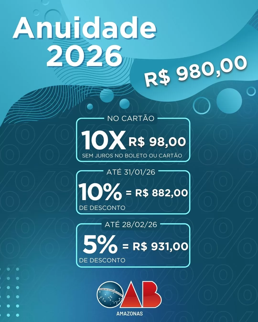 Após quatro anos sem reajuste, e em atendimento ao Provimento nº 232/2025 do Conselho Federal da OAB, *que determinou a atualização do valor da anuidade em todo o Brasil para R$ 1.050,00, o Conselho Seccional estabeleceu a anuidade* em R$ 980,00 dentro do período de transição estabelecido em âmbito nacional.