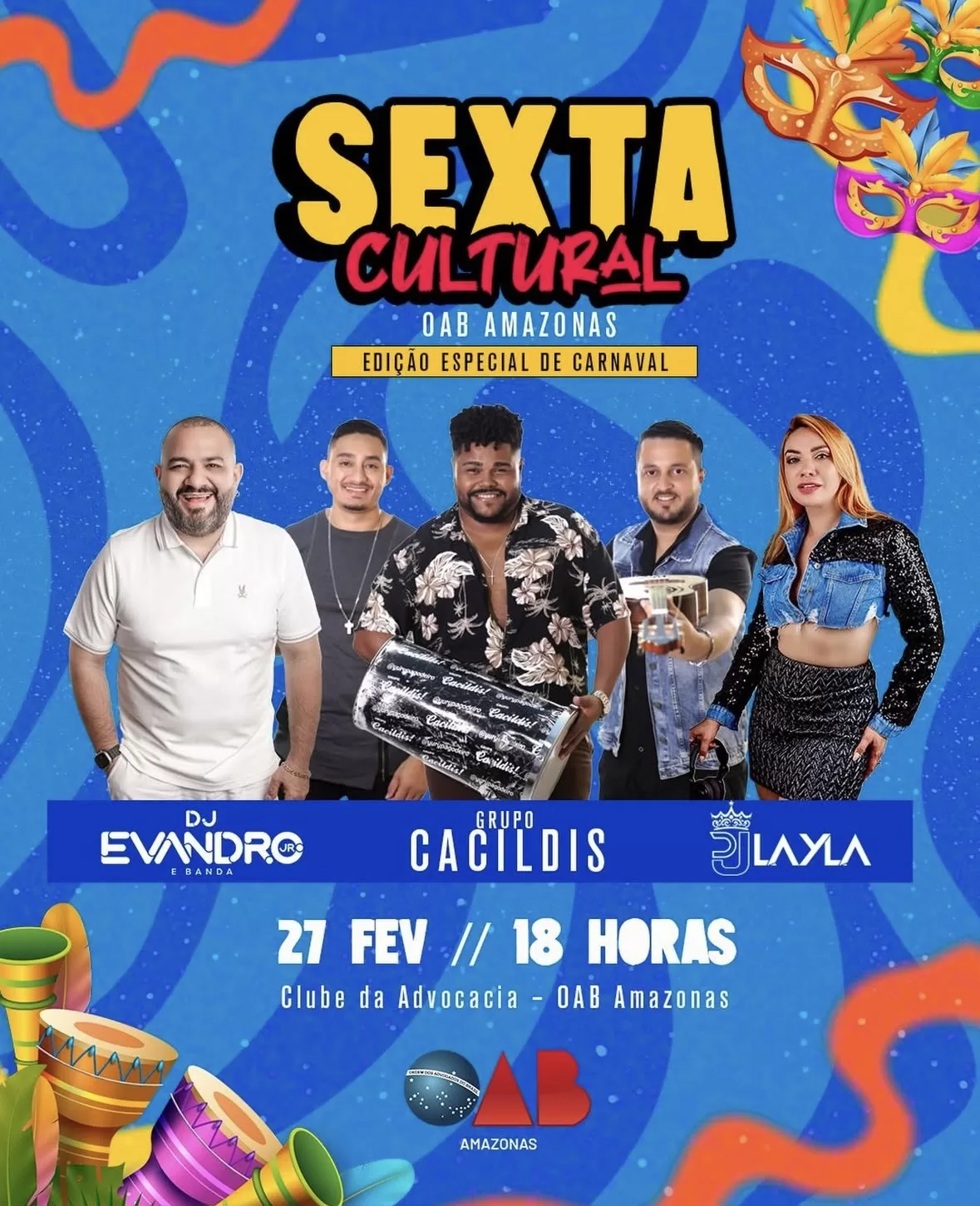 No dia 27 de fevereiro, às 18h, o Clube da Advocacia será palco de muita música e energia ao som de DJ Evandro Jr., Grupo Cacildis e DJ Layla. 🎶